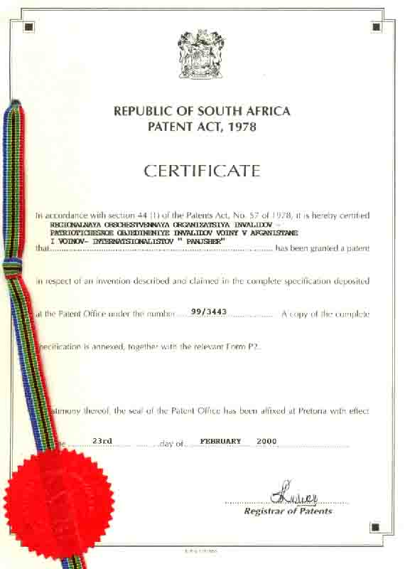 ЮАР - № 99/3443, 1999г. и № 2004/1109, 2005г.