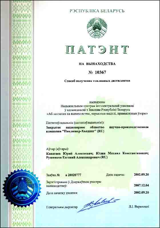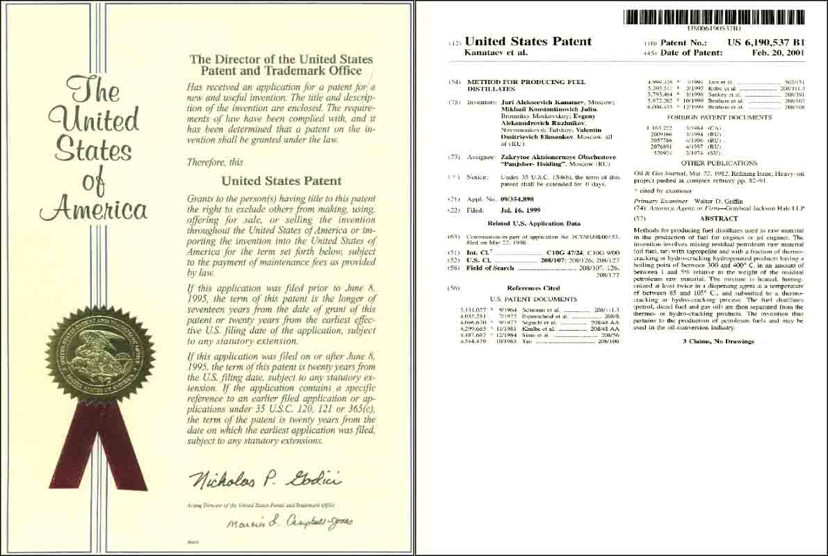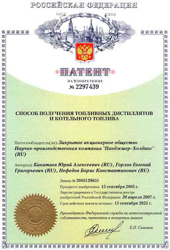 Переработка тяжелых нефтяных фракций методами Термоконверсии и Термогидрокрекинга «Панджшер» защищёна патентами: