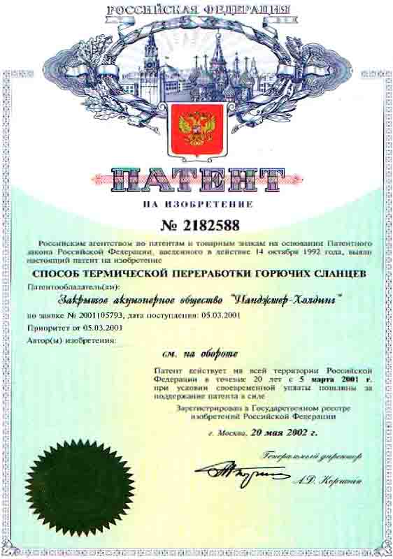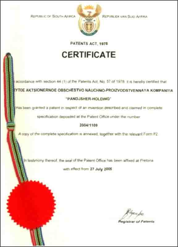 РФ - № 2009162, 1994г.; № 2009166, 1994г.; № 2128207, 1999г.; № 2182588, 2002г.; № 2198199, 2003г.; № 2261265, 2005г.; № 2297439, 2007г.