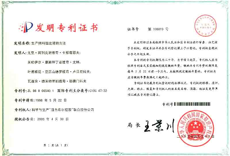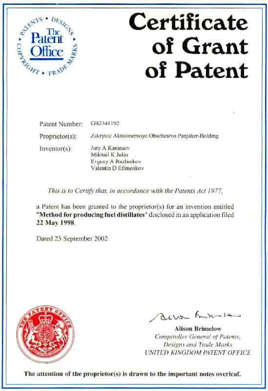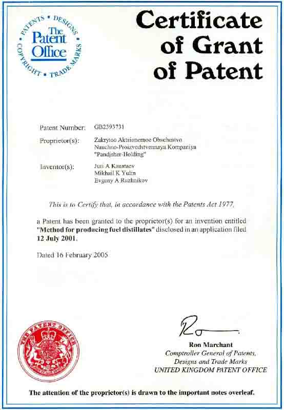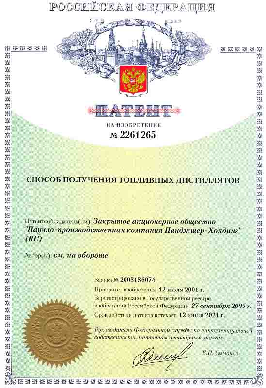 Переработка тяжелых нефтяных фракций методами Термоконверсии и Термогидрокрекинга «Панджшер» защищёна патентами: