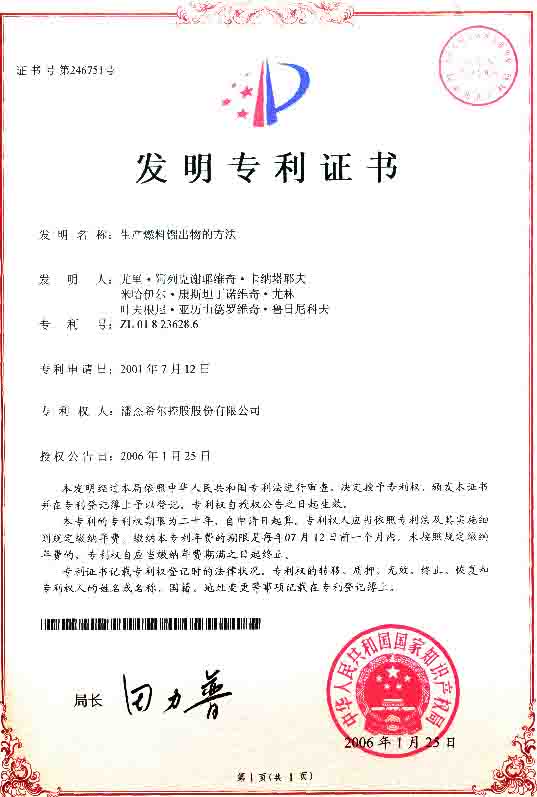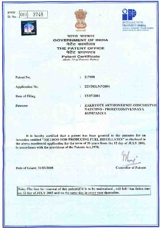 Китая - № 108819, 2003г. и № ZL 01823628.6, 2006г.